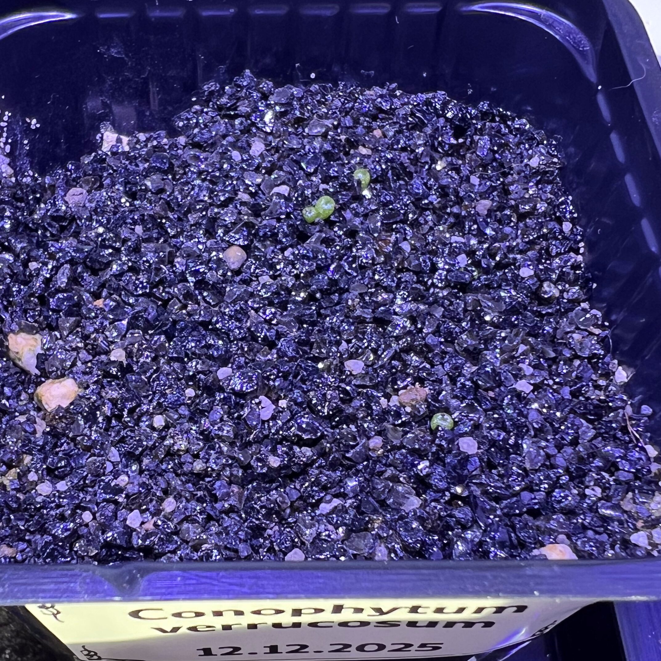 J’ai sortis les pots de leurs sacs de congélation, j’ai trop peur de la pourriture qui semble être un problème sur les semis. Certains lithops ont déjà pris des couleurs ! Certains perdent l’équilibre parce qu’ils n’arrivent pas à planter leurs racines, je crois que le sable est un peu trop grossier pour ces petites plantes.