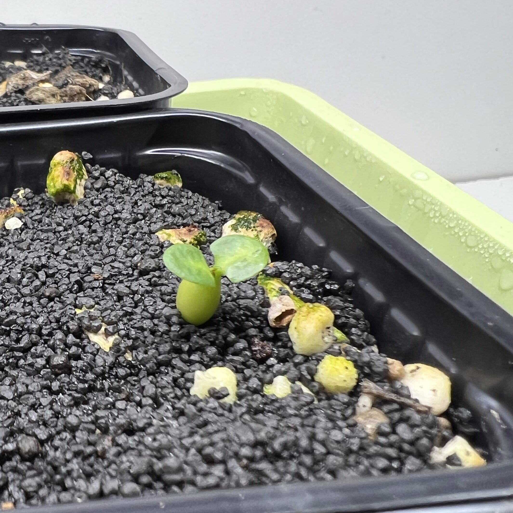 Sortis un pot du sac de congélation après l’avoir ouvert parce que 5 graines ont germées, mis sur une grande soucoupe remplie d’eau pour maintenir une bonne humidité. L’autre pot a été transféré dans une mini-serre, une seule germination pour l’instant.