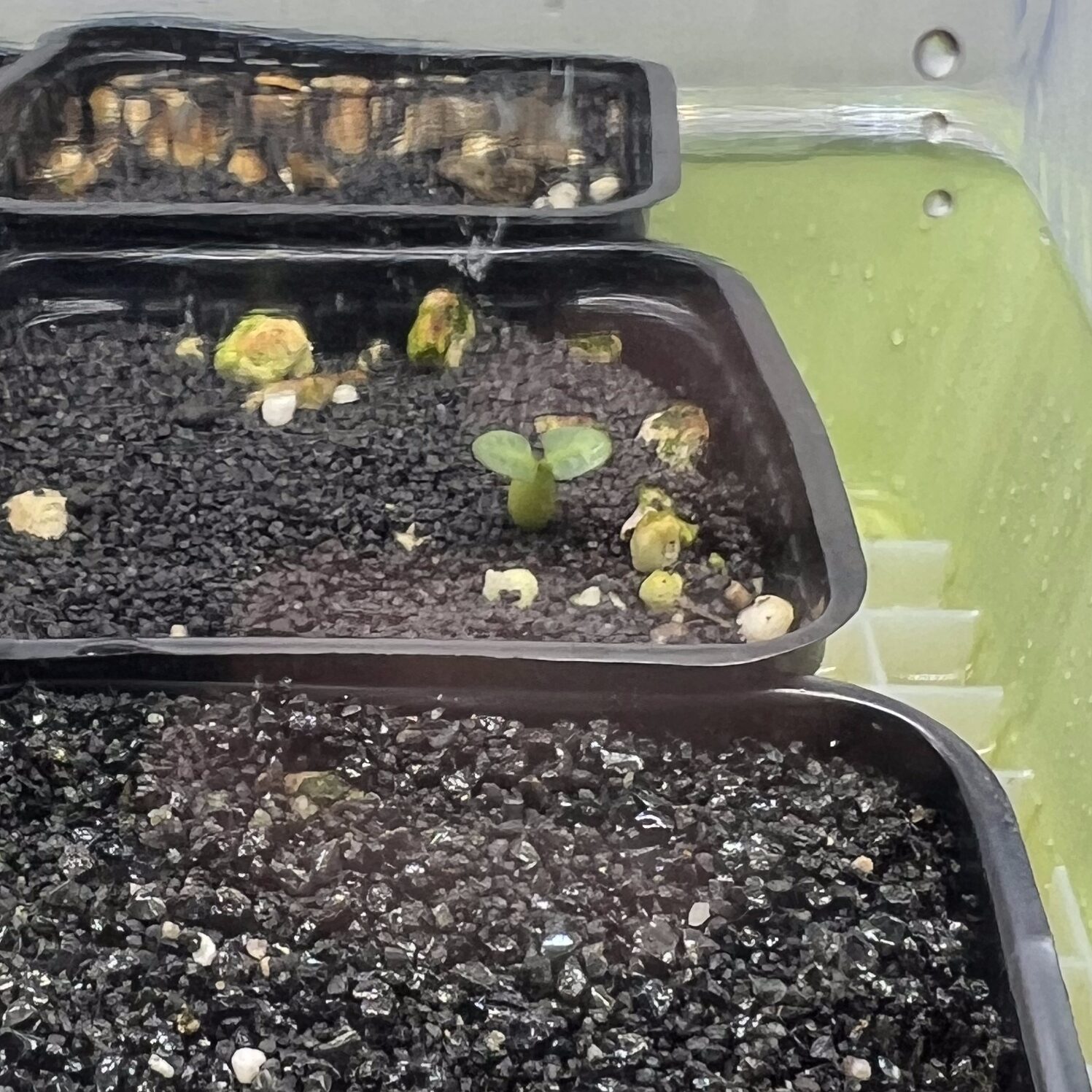 Semis effectués, 5 graines par pot de 7×7 en plastique, substrat d’à peu près 50% de matière organique, le reste est du sable, de la pumice, de la perlite, passé au microonde 5 minutes (sans les graines) pour stériliser. Mis dans un sachet de congélation pour garder l’humidité à 100%